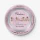 Pink and Silver Damask with Teddy Bears Paper Plate