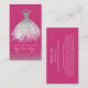 Elegant dress seamstress business card, with graphics of a white and silver glitter dress, against a lip stick pink background, with silver glitter looking accents. Personalise the text to suit your business needs. A lovely stand out card for your tailoring business.