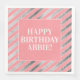 Personalised pink and silver diagonal-striped birthday party napkins. Customise with your own text.