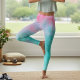 Pink and Teal Abstract Watercolor Leggings.
