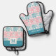 Pink And Teal Ethnic Elephant Pattern Oven Mitt & Pot Holder Set