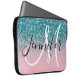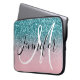 Pink and Teal Ombre Glitter Monogrammed Laptop Sleeve