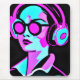 Pink and Teal Psychedelic Lady in Headphones Mouse Pad
