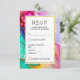 A wedding RSVP card with a fancy artistic abstract design. Watercolor painting with the colours mixing and mingling creating a nice flowing pattern. A white frame with a faux gold foil border layered over top with your personalised text written inside.