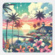 Pink and Turquoise Paradise | Beach Art Square Sticker