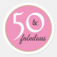 Pink and White 50 and Fabulous Typography Classic Round Sticker
