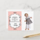 Cute, little girl birthday party Thank you card with a pink and white design. This card is completely customisable, so add your photo and place your text in the spaces provided. For more creative control, use the "Customise It" button to change font, font size or colour.