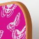 a decorative pattern design featuring lots of little white butterflies flying around on a pink background.