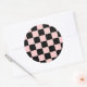 Pink and White Chequered Classic Round Sticker