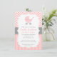 Pink and White Chevron, Stroller, Baby Girl Shower Invitation