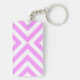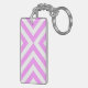 Pink and White Chevrons Key Ring
