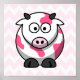 A strawberry pink cute cartoon cow. Round cow graphic.