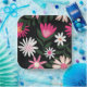 Pink and white daisy design on black.
