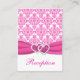 This pink and white damask reception card has a hot pink FAUX ribbon and a pair of diamond and pink glitter joined hearts brooch. It matches the wedding invitations shown below. You can also change it to be a map or directions card by changing the text accordingly. If there are any other matching items you require, please email your request to niteowlstudio@gmail.com.