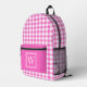 Pink and White Gingham Check Plaid Monogram Printed Backpack