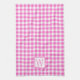 Pink and White Gingham Plaid Monogram Tea Towel