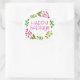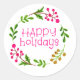 Pink and White Happy Holidays Wreath Classic Round Sticker