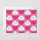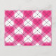 This postcard features a hot pink and white hearts argyle pattern. The reverse side of the postcard is blank, awaiting your text or handwritten sentiments.