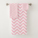 Pink and White Medium Horizontal Chevron Stripes Bath Towel Set