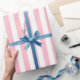 Pink and White Medium Size Vertical Stripes Wrapping Paper
