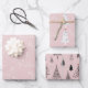 Pink and White Merry Christmas Tree Wrapping Paper Sheet