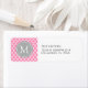 Bubblegum Pink and White Modern Moroccan Return Address Labels with Monogram. Grey dotted circle.