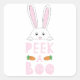 Pink and White Peeking Easter Bunny Peek-A-Boo Square Sticker