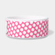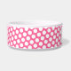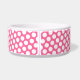 A simple dog bone shape on a pink and white polka dot pattern. You can change the font colour and style, as well as the background colour.