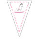 Pink and White Rocking Horse design features the adorable image of a pink and white rocking horse on first and last banner flag.