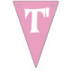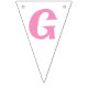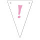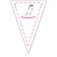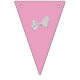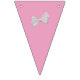 Flags in between display the letters in alternating pink and white, "IT'S A GIRL!" The words are separated by the image of bows. Letters may be changed to suit your needs.