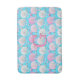 Pink and white sea shells on a soft turquoise blue background bath mat with a custom monogram