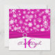 This hot pink and white glittery snowflake sweet sixteen birthday party invitation with a fuchsia PRINTED ON ribbon and diamond brooch is shown here on basic paper. All the text is customisable and so is the paper type. If you require any matching items in this design, please email your request to niteowlstudio@gmail.com.