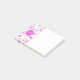 These girly soccer Post-it® Notes (4" x 3") feature randomly arranged pink and white traditional style soccer balls of varying sizes on the left edge and overlying customisable name and monogram on a coordinating pink circle pendant and jersey number on one of the soccer balls - by katz_d_zynes