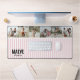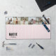 Modern minimal typography girly pink and white stripe elegant simple multi photo unique personalised gift desk mat design.