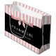 Pink and White Striped with a black banner Baby Shower Large Gift Bag.