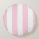 This pink and white striped round pillow has a trendy Palm Beach aesthetic.