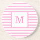 Pink and White Stripes Custom Monogram Sandstone Coaster