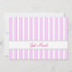 A custom New Address / Just Moved card with editable text in script and block letters front and back. The background has pink stripes light and dark with grey edges in a simple, classic background pattern.