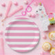Pink and White Stripes Paper Plate