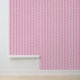 This cute wallpaper features soft pink and white thin vertical stripes. Perfect for nurseries or child's room.