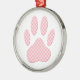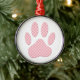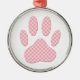 Pink And White Tartan Dog Paw Print Metal Tree Decoration