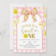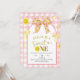 Pink and Yellow Bow Sweet One Lemon Birthday Invit Invitation