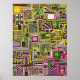 From an original hand drawn design by Nola Edsall of square and rectangle geometric doodle shapes with various busy patterns. This stunning, artistic design is intricate and detailed and uses the bright pop colours of pink, yellow, lime green and black. Perfect for home or office decor to add a pop of colour to your life.