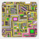From an original hand drawn design by Nola Edsall of square and rectangle geometric doodle shapes with various busy patterns. This stunning, artistic design is intricate and detailed and uses the bright pop art punk colours of pink, yellow, lime green and black. Perfect to add a pop of colour to your life.