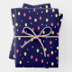 Pink and Yellow Polka Dots on Navy Blue Wrapping Paper Sheet