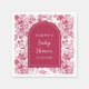 This beautiful and elegant baby shower napkin features an antique pink Chinoiserie pattern. The text combines handwritten script and serif fonts for a stylish and modern look. This is perfect for a spring or summer garden baby shower.