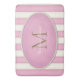Pink & Antique White Stripes Bronze Monogram Bath Mat