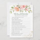 This design features a watercolor illustration of apricot pinkish roses and greenery foliage. Bridal Shower Game - Who Knows The Bride Best.