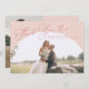Elegant and minimal wedding thank you photo card featuring a large pink arch frame with a script font that says "thank you" at the top. You can add a second picture on the back with a message.
