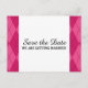 Classic and elegant Argyle Save the Date Postcard with a simple pink diamond argyle pattern background. Easy to customise with your wedding details. For more customisation options, click on the Customise It button.